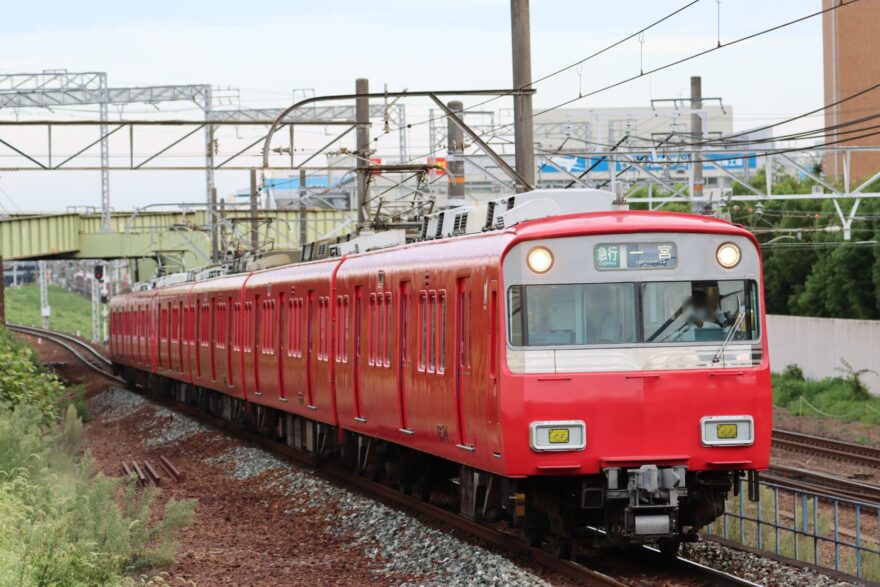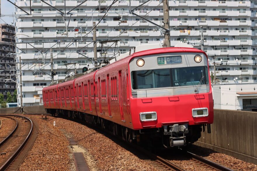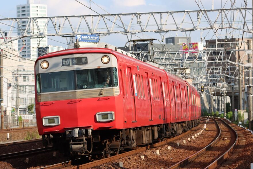 金魚鉢タイプの6800系と併結しての普通運用(2025年7月、金山~神宮前間にて撮影)。