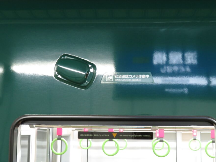 13000系30番台には、乗降時や発車時に運転士から旅客の動向を確認できるよう車体側面にカメラが設置されています。