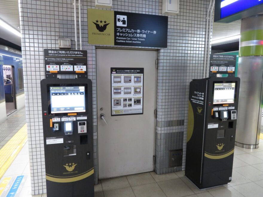 プレミアムカーの利便性を支えるプレミアムカー券・ライナー券のキャッシュレス券売機。特急停車駅に設置されています。
