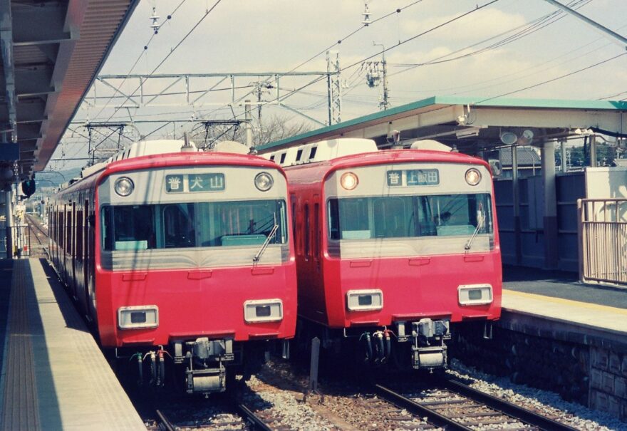 まずは、神宮前駅での光景から。6000系と全車指定席(!)の1000系4連(B4)との並び(1996年8月撮影)。
